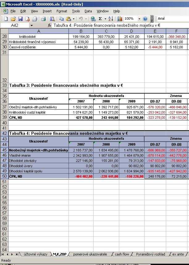 Tabuľka 4: Posúdenie financovania neobežného majetku v €