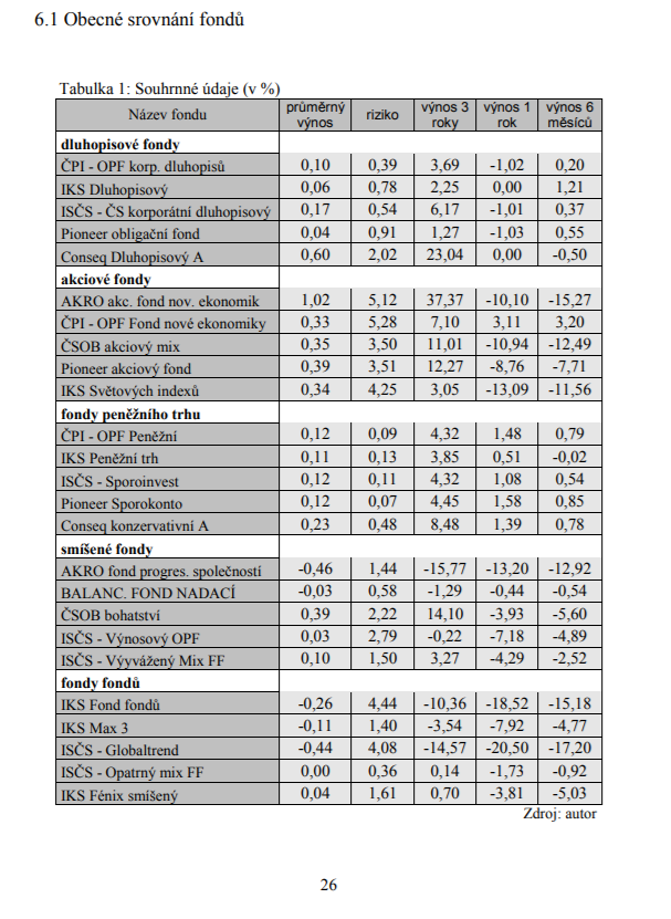 6.1 Obecné srovnání fondů 26