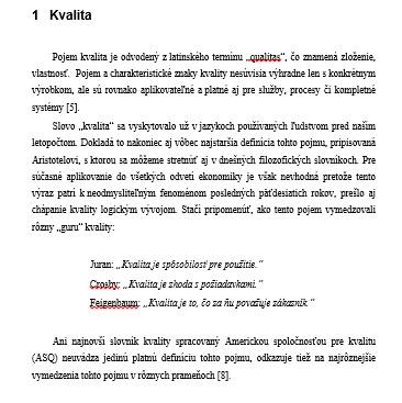 - HRNČIAR, M.: Kvalita v službách [Skriptá Katedry softvérových technológii Žilinskej univerzity], [online] 2009. [citované 2010-03-14]. dostupné na internete.