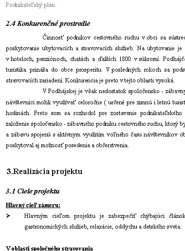 Podnikateľský plán - spoločensko - zábavný podnik podnik v cestovnom ruchu