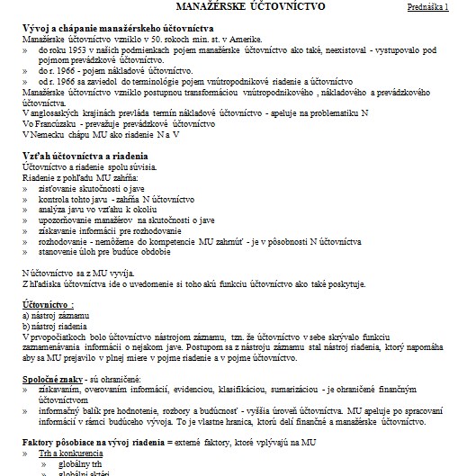 » do roku 1953 v našich podmienkach pojem manažérske účtovníctvo ako také, neexistoval - vystupovalo pod pojmom prevádzkové účtovníctvo.