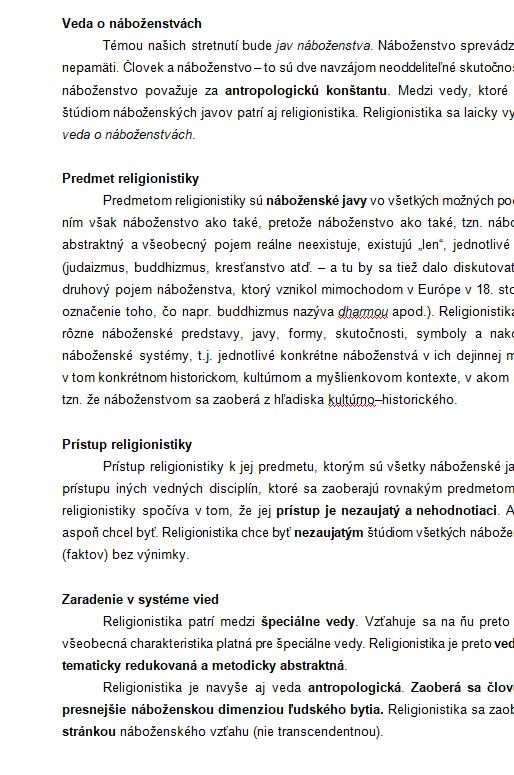 Predmetom religionistiky sú náboženské javy vo všetkých možných podobách. Nie je ním však náboženstvo ako také, pretože náboženstvo ako také, tzn. náboženstvo ako abstraktný a všeobecný pojem reálne neexistuje, existujú „len“, jednotlivé náboženstvá (judaizmus, buddhizmus, kresťanstvo atď. - a tu by sa tiež dalo diskutovať o tom, či sa druhový pojem náboženstva, ktorý vznikol mimochodom v Európe v 18. storočí, hodí na označenie toho, čo napr. buddhizmus nazýva dharmou apod.). Religionistika teda skúma rôzne náboženské predstavy, javy, formy, skutočnosti, symboly a nakoniec aj celé náboženské systémy, t.j. jednotlivé konkrétne náboženstvá v ich dejinnej mnohosti, tzn. v tom konkrétnom historickom, kultúrnom a myšlienkovom kontexte, v akom sa vyskytujú, tzn. že náboženstvom sa zaoberá z hľadiska kultúrno-historického.