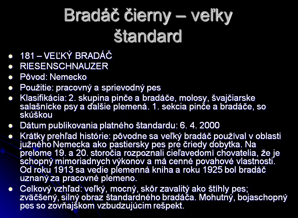 Prezentácia ako report z podujatia NITRACANIS s udeľovaním CACIB-CAC-CAJC v NITRE. Je to spojené s charakteristikou plemena Bradáč čierny.