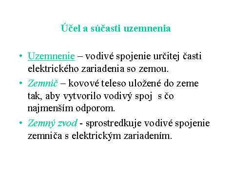 Uzemnenie - vodivé spojenie určitej časti elektrického zariadenia so zemou.