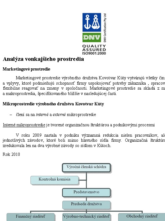 Podnikové procesy výrobného družstva Kovotvar Kúty