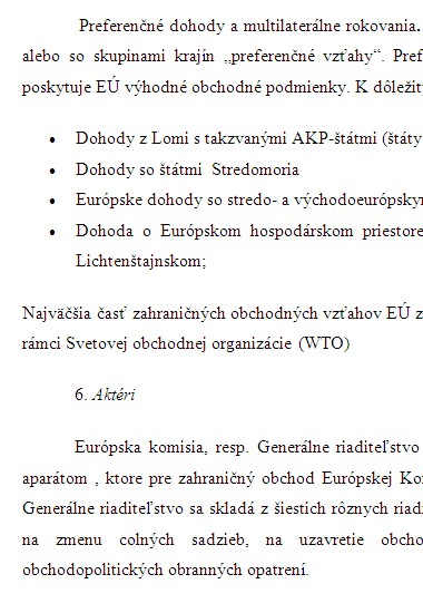 Európska únia je najväčší svetový obchodník s 20 % globálnych dovozov a vývozov. Obchod medzi jednotlivými členmi sa začal takmer pred 50 rokmi a stal sa podnetom na založenie EÚ, ktorá priniesla všetkým členským štátom väčšiu prosperitu. Únia preto preberá vedúce postavenie v úsilí otvoriť svetový obchod, z ktorého budú mať rovnaký osoh bohaté aj chudobné krajiny. Preto cieľom dizertačnej práce je analýza jednotlivých aspektov vývoja a nástrojov obchodnej politiky Európskej Únie s konkrétnym zameraním na aktuálne ekonomické procesy a ich vplyv tak na hospodárstvo Európskej Únie ako aj globálne hospodárstvo.
