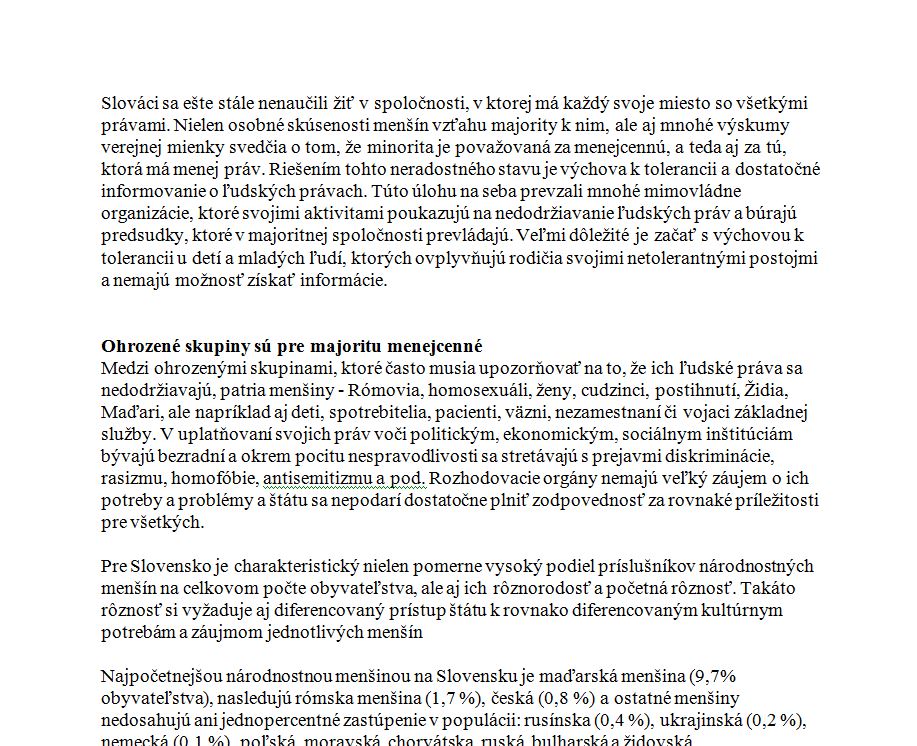 Práva národnostných menšín (maďarská, rómska, česká, rusínska...)