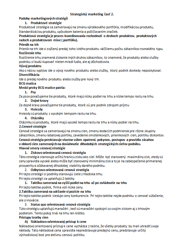 Strategický marketing (podoby marketingových stratégii, prístupy tvorby cien...)