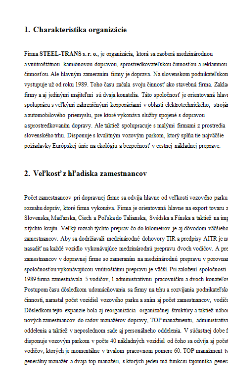 Firma STEEL-TRANS s. r. o., je organizácia, ktorá sa zaoberá medzinárodnou a vnútroštátnou kamiónovou dopravou, sprostredkovateľskou činnosťou a reklamnou činnosťou. Ale hlavným zameraním firmy je doprava. Na slovenskom podnikateľskom trhu vystupuje už od roku 1989. Toho času začala svoju činnosť ako stavebná firma. Zakladateľmi firmy a aj jedinými majiteľmi sú dvaja konatelia.