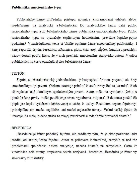 Členenie a charakteristika publicistiky emocionálneho typu v printovom médiu