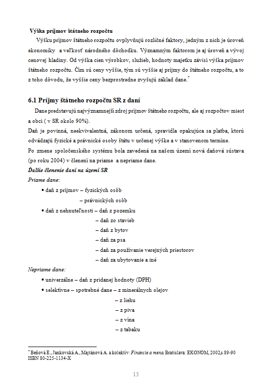 6.1 Príjmy štátneho rozpočtu SR z daní