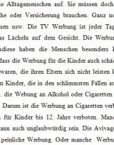 Práca v nemeckom jazyku na odbornú tému, použitá pri štátnej jazykovej skúške úroveň C1. Je zameraná na reklamu, jej význam a druhy a opisuje vplyv reklamy na ľudí a jej význam pre výrobcov, ktorý sa prostredníctvom reklamy snažia zabezpečiť čo najväčší odbyt svojich produktov...
