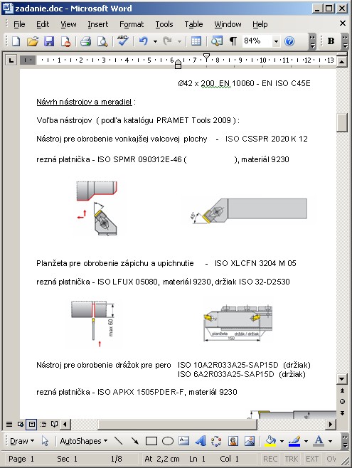 Zadanie obsahuje 2 word súbory. Jeden je samotné vypracované zadanie. Druhý obsahuje technologický postup pre výrobu hriadeľa. Zadanie ešte obsahuje výrobný výkres hriadeľa (v obrázku) a výkres (v DWG) dispozičného riešenia pracoviska s materiálovým tokom.