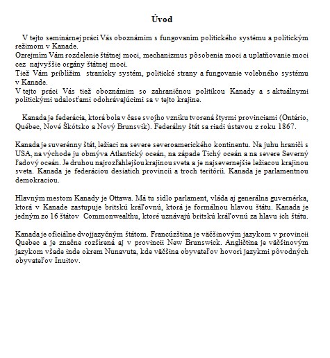V tejto práci Vás tiež oboznámim so zahraničnou politikou Kanady a s aktuálnymi politickými udalosťami odohrávajúcimi sa v tejto krajine.