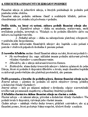 Financovanie podniku, charakteristika, členenie finančných zdrojov