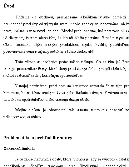 V mojej seminárnej práci som sa konkrétne zamerala čo za tým presnejšie je, teda konkrétnejšie na tému obal produktu, jeho funkcie a dizajn. V závere som sa sústredila na deti ako na spotrebiteľov, a ako vnímajú dizajn obalu.