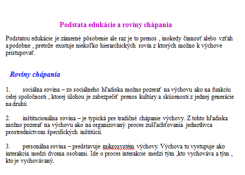 Podstata edukácie a roviny chápania