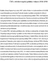 Čo sa týka ČSR, tak kniha približuje jeho vzťahy so zahraničím od vzniku štátu v 1918. Objasňuje nám prvé kroky v politike nového štátu od tvorby hraníc až po vytvorenie si stabilného miesta na geopolitickej mape Európy a vzniku Malej dohody, kde bolo ČSR dlho hegemónom. Pokračuje potom opisom politiky ČSR a veľmocí v 20. rokoch, postupným prienikom Talianska a jeho vplyvu do strednej Európy, vzťahom ČSR k Maďarsku, Rakúsku alebo k iným štátom.