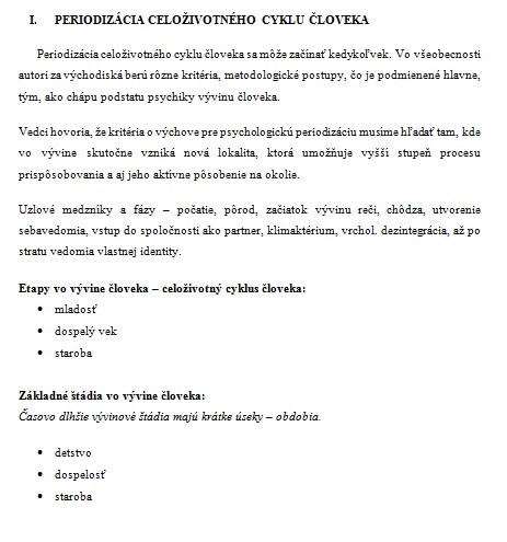 Nevyhnutnosť plynutia času sa v celej organickej ríši, teda i u človeka prejavuje zmenami v stavbe organizmu a tiež v jeho psychike.