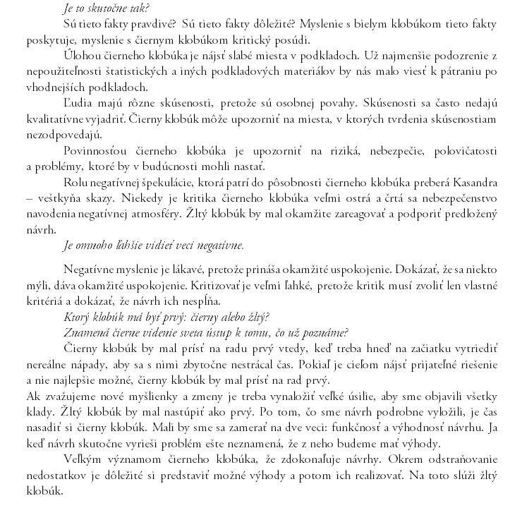 - Edward de Bono: Šest klobouku aneb jak myslet