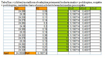 2.Cieľ merania - Uvedenie operácie do štatistického stabilného stavu a preverenie sposobilosti procesu s využitím regulačných diagramov.