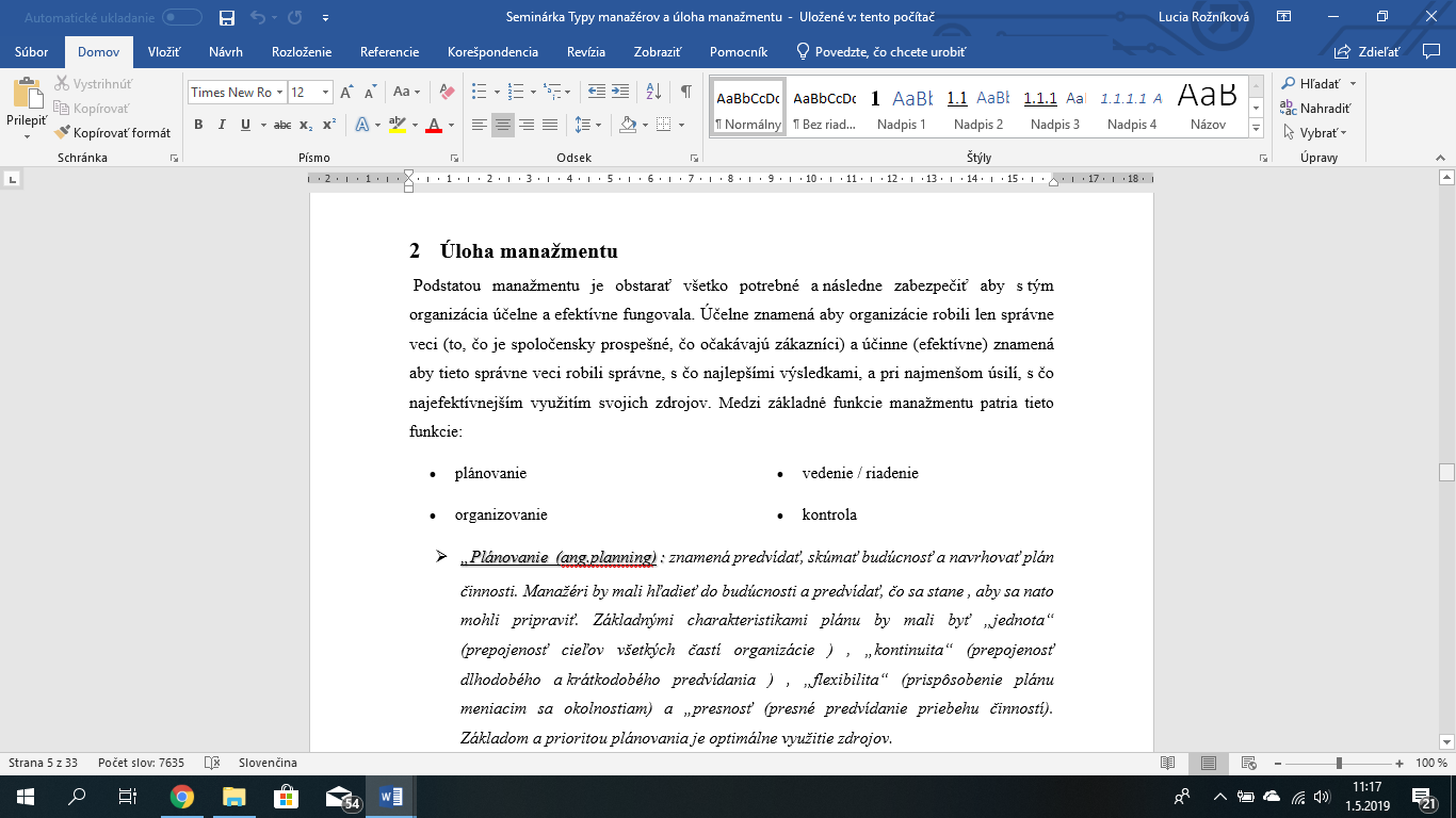 Seminárna práca z predmetu Základy manažmentu, v seminárnej práci som sa zaoberala typmi manažérov - ich vlastnosťami , predispozíciami - psychologickými vlastnosťami. V seminárnej práce sa taktiež spomína úloha manažmentu ´, komunikácia a reč tela. Seminárna práca obsahuje grafy, tabuľky ktoré sú vlastnoručne spracované