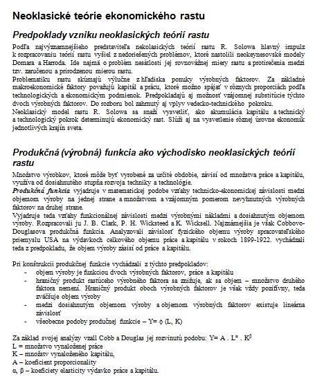 Produkčná (výrobná) funkcia ako východisko neoklasických teórií rastu