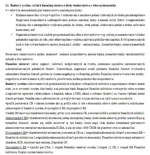14. Bankový systém, vzťah k finančnej sústave a úlohy bankovníctva v trhovej ekonomike