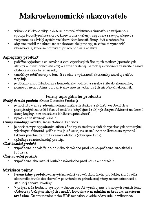 • aby sme mohli v skúmať makroekonomické procesy, musíme si vymedziť ukazovatele, ktoré sa používajú pri ich popise a analýze.