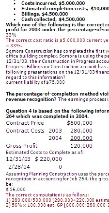 Question 4 is based on the following information for Manning Construction’s Job 264 which was completed in 2004.