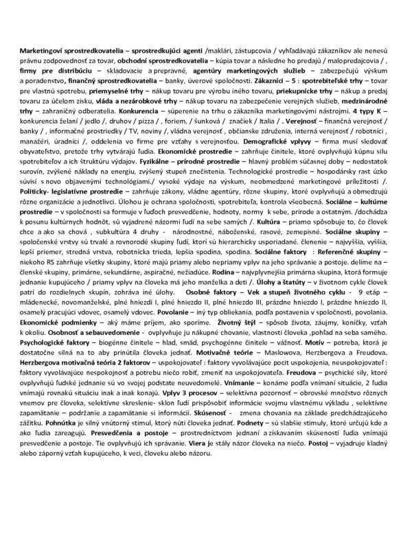 Požiadavka je túžba po uspokojení hlbších ľudských potrieb. Dopyt sú požiadavky na produkty podložené schopnosťou a ochotou kúpy. Výrobky je to čokoľvek čo môžeme niekomu ponúknuť aby sme uspokojili svoje potreby a požiadavky. Hodnota je odhad zákazníka celkovej vlastnosti výrobku, t.j miera uspokojenia jeho potrieb. Náklady sú finančné prostriedky potrebné na získanie produktu, ktorý uspokojí zákazníkove potreby alebo požiadavky. Uspokojenie je stav, pocit z toho že naše potreby a požiadavky sú naplnené. Výmena je akt získania výrobku od niekoho ponúknutím za niečo. Musia byť splnené 5 požiadavky : musia byť 2 strany, každá strana má niečo čo má hodnotu pre druhú stranu, každá strana je schopná komunikácie a dodania tovaru, sloboda odmietnutia alebo prijatia ponuky, každá strana sa domnieva, že je potrebné jednať s druhou stranou a dospieť k dohode. Transakcia je obchod s hodnotami medzi 2 stranami – peňažná a naturálna. Ľudská potreba je uvedomenie si nedostatku a túžba po jeho odstránení. Marketing je spoločenský a riadiaci proces, v ktorom jednotlivci a skupiny získavajú to čo potrebujú a požadujú a to ponukou, výmenou, tvorbou a pod. Cieľom je uspokojenie ľudských potrieb a požiadaviek. Trh je skupina kupujúcich