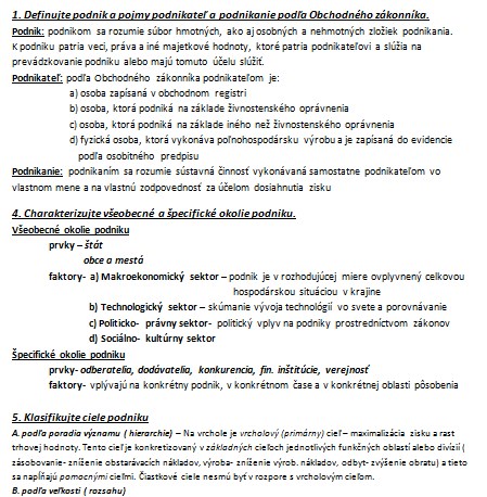 1. Definujte podnik a pojmy podnikateľ a podnikanie podľa Obchodného zákonníka.