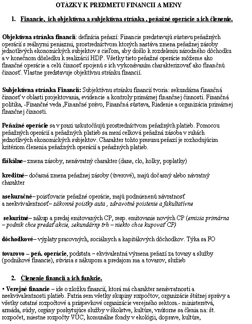 - 1. Financie, ich objektívna a subjektívna stránka , peňažné operácie a ich členenie.