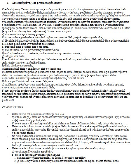 - 1. Autorské právo, jeho predmet a pôsobnosť