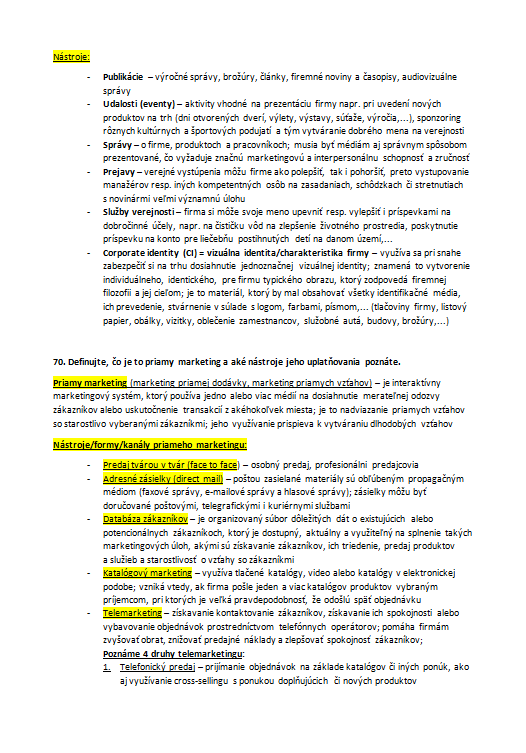 70. Definujte, čo je to priamy marketing a aké nástroje jeho uplatňovania poznáte.