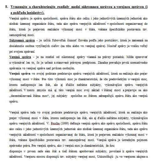 8. Vymenujte a charakterizujte rozdiely medzi súkromnou správou a verejnou správou (i z pohľadu legislatívy).