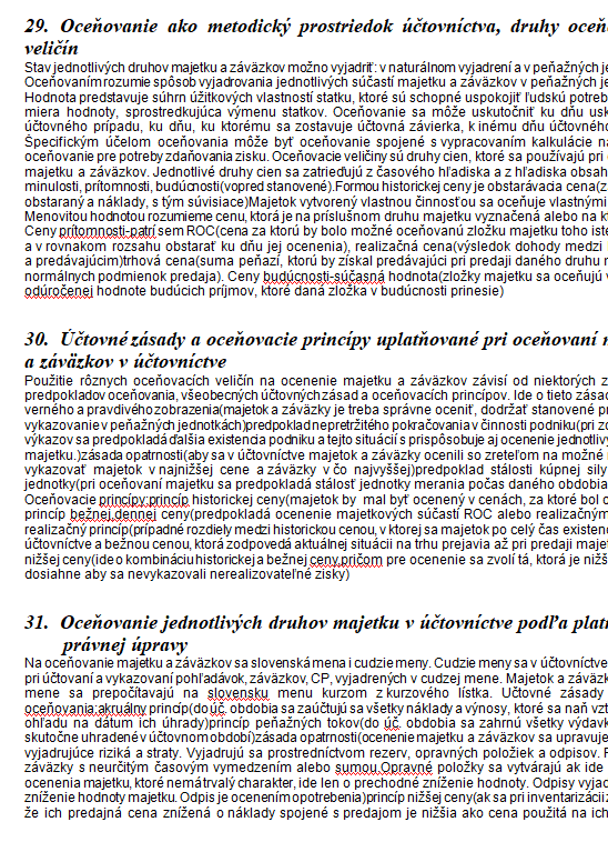30. Účtovné zásady a oceňovacie princípy uplatňované pri oceňovaní majetku a záväzkov v účtovníctve právnej úpravy