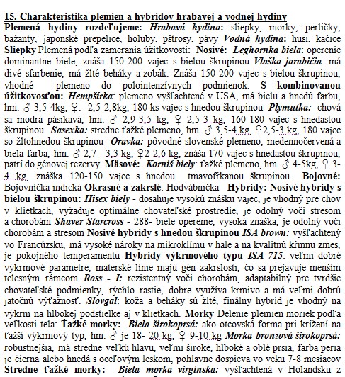 21. Hydina - technika chovu a kategórie vo vzťahu k hlavným úžitkovým smerom.